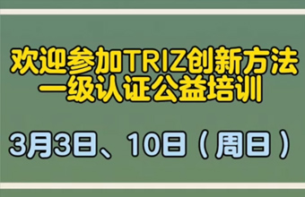 欢迎参加TRIZ创新方法一级认证公益培训