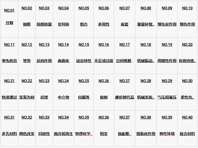 点击查看:TRIZ40个发明原理案例汇总
