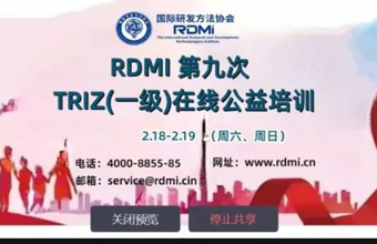 TRIZ创新方法免费认证培训-端午2天揭开破解技术难题的秘密,创新者的福利- RDMI第十一次公益培训