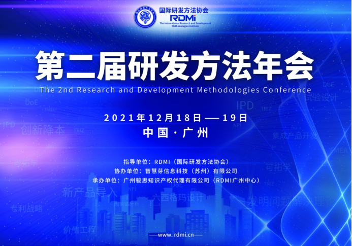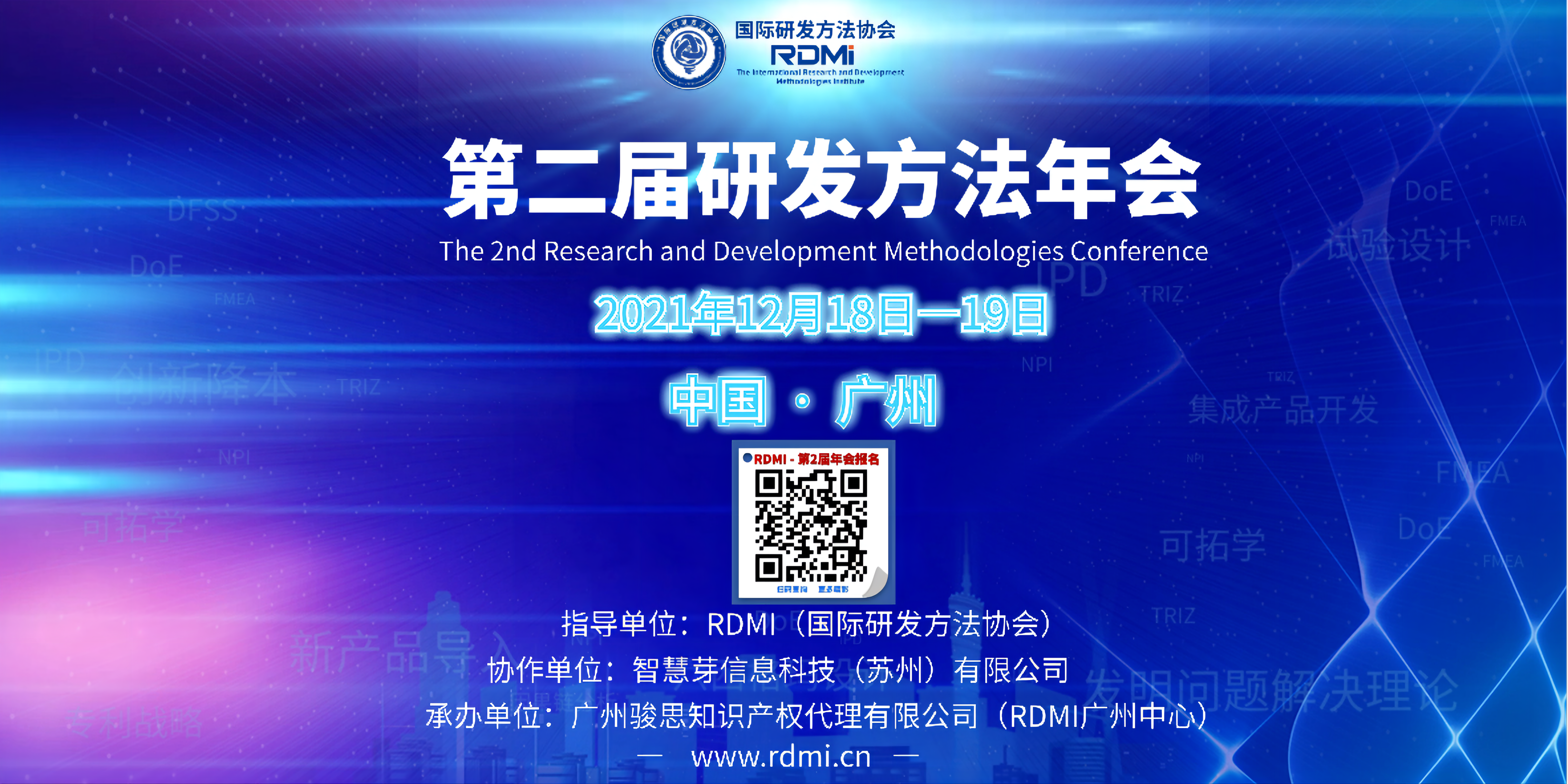 2021年12月18日-19日,第二届研发方法年会在广州成功举办。本次年会由RDMI(国际研发方法协会)指导,由智慧芽信息科技(苏州)有限公司协办,由广州骏思知识产权代理有限公司(RDMI广州中心)承办。 考虑到当前疫情防控形势严峻复杂,为保障参会人员安全,减少不必要出行,减少人员聚集,年会主办方严格控制线下会场人数;同时,为满足全国各地广大研发方法爱好者的需求,本次年会采取线上线下同步举办的模...