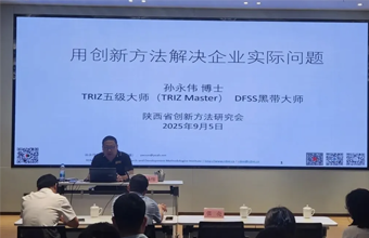 2025年9月5日,TRIZ五级大师(TRIZ Master)、DFSS黑带大师孙永伟博士受陕西省创新方法研究会的邀约,为陕西省科技控股公司做了《用创新方法解决企业实际问题》的报告。报告会历时半天,来自下属研发企业陕西省纺织科学研究院、陕西省印科所等数十名技术人员参与。本次报告聚焦科研院所面临的技术攻关与成果转化等核心挑战,系统阐述了创新方法在提升研发效能与成果转化率中的关键作用。孙博士由简入繁,...