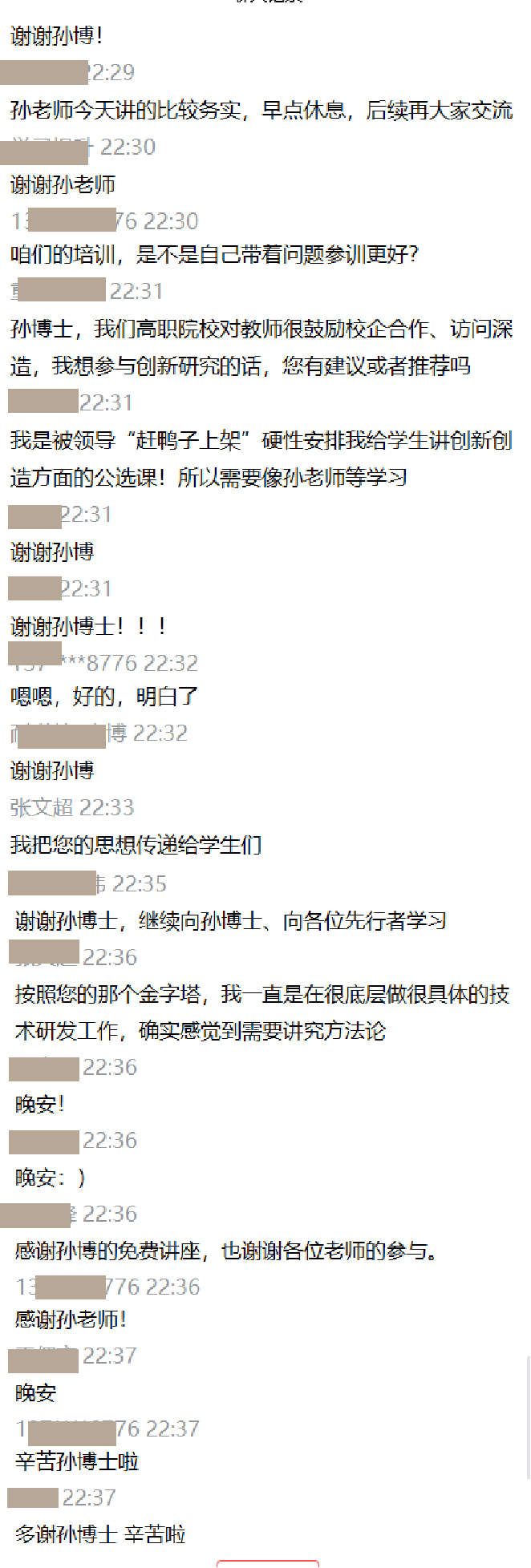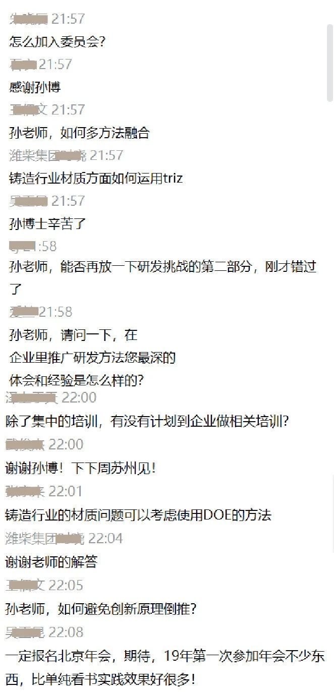 本次在线讲座原计划2小时,但与会听众对本次讲座的内容产生了浓厚的兴趣,在最后的互动阶段,大家围绕不同类型的研发方法论的融合、项目实战、企业中的推进等进行了提问。孙永伟博士以他20多年来在国内顶级科研机构、全球一流跨国企业研发中心以及央企研发中心推进研发方法过程中积累下来的丰富实战经验,一一做了回答。