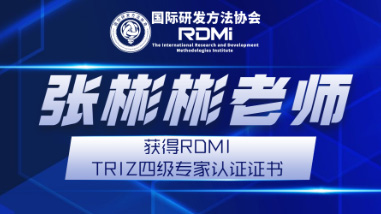 张彬彬老师获得RDMI(国际研发方法协会)TRIZ四级专家认证证书