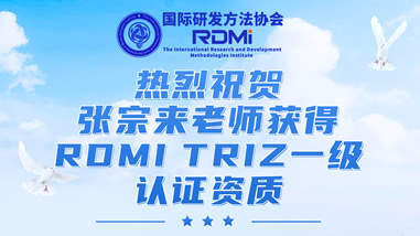 热烈祝贺张宗来老师获得RDMI (国际研发方法协会)TRIZ一级认证资质