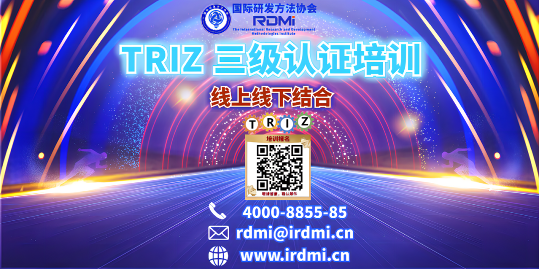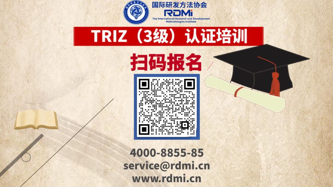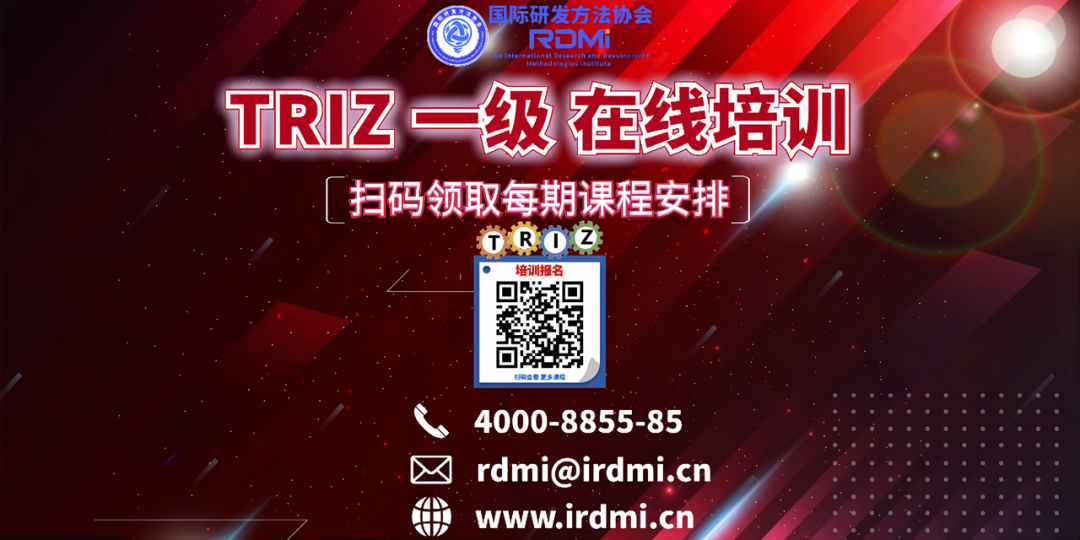 (长按二维码联系班主任报名)各位研发方法爱好者们,自从RDMI®自3月以来推出了公益TRIZ一级(基础级)培训以来,已经多次举办为期两天的培训,先后让8000多人了解到了先进的研发方法论理论体系。其中有3000多人获得了RDMI® TRIZ一级认证证书。让许多研发人员从TRIZ专家们在工作之中巧妙解决过大量实际案例中,感受到了方法论在解决技术难题中的重大作用,可谓“方法一变,柳暗花明”。我们所推出...