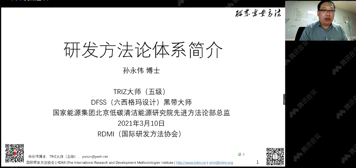 2021年3月10日晚,RDMI在线举办了面向研发方法爱好者们的讲座,主要目的是向研发人员们介绍在研发中起着非常重要作用的研发方法论。DFSS(六西格玛设计)黑带大师、全球华人首位TRIZ大师(五级)孙永伟博士全程主讲。孙博士围绕全球领先的企业在开展研发活动时,在企业管理层之下的研发项目决策层、流程管理层、执行层中起着关键作用的研发方法论以及它们之间的关系进行了简单介绍。随后又着重介绍了现代TRI...