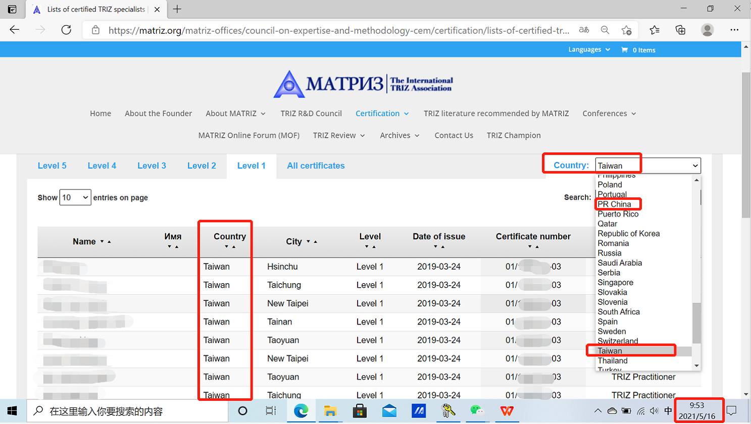 各位朋友,陆续收到一些朋友反馈收到了MATRIZ关于孙永伟博士的公告,此类负面信息已经不是第一次了,给孙永伟博士的声誉造成了极坏的影响。就此,孙永伟博士已委托律师处理。现就“MATRIZ公告”发布以下声明:据学员反映,MATRIZ(国际TRIZ协会)官方网站将“PR China”、“Taiwan”及“Hong Kong”并列为国家选项,这一漠视中国领土及主权完整的行为,极大伤害了中国人民的感情,且...
