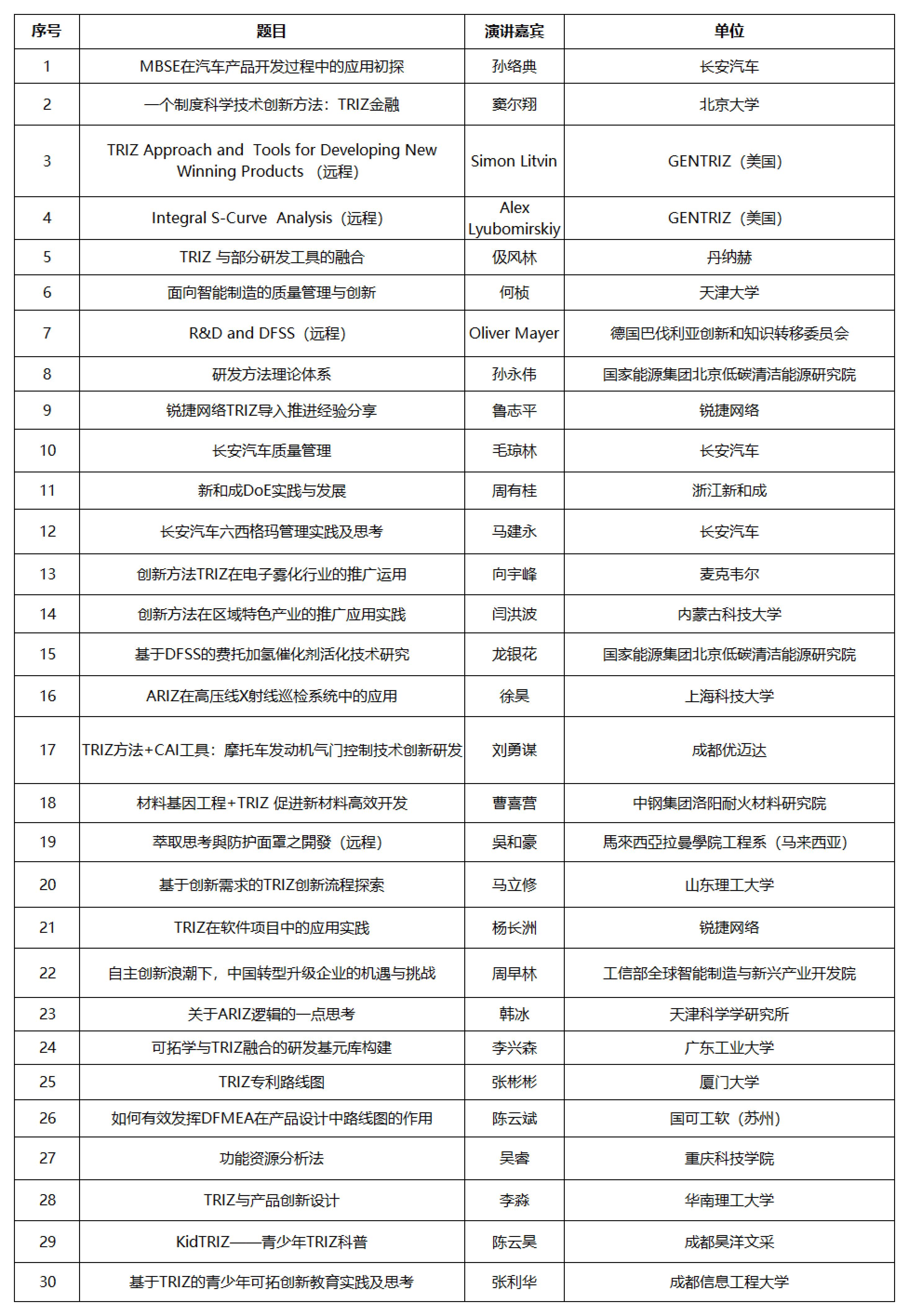 第一届RDMI(国际研发方法协会)年会暨第五届TRIZ年会详细日程安排