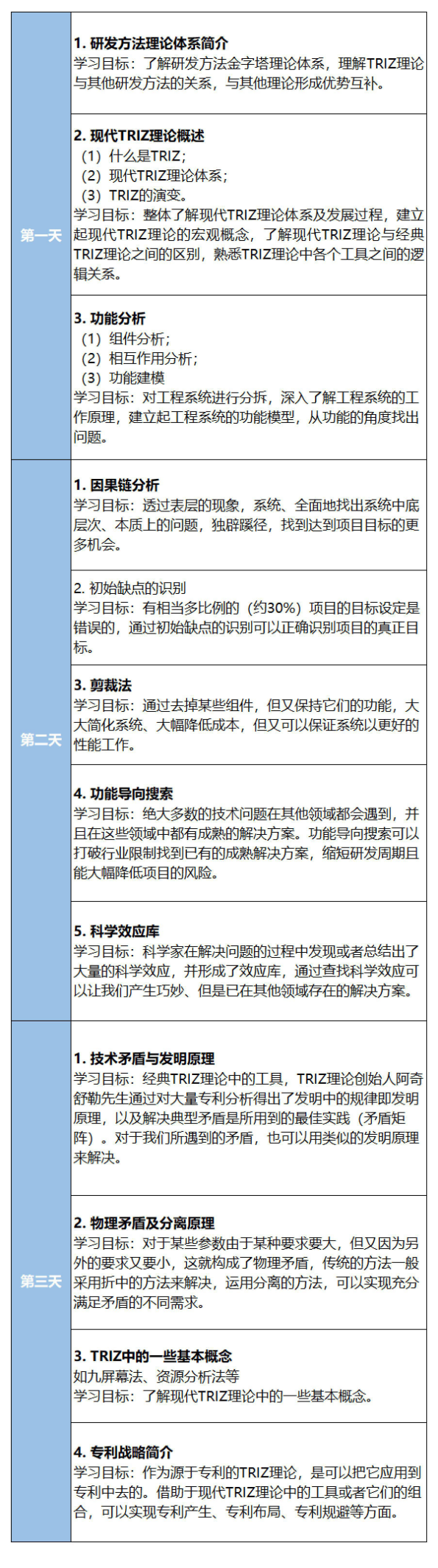 培训对象:企业研发负责人,研发总监,资深研发工程师、技术人员、学校老师、学生、知识产权领域的工作者、企业创新管理人员,战略性研发部门人员,从事科研及科技创新人员等。