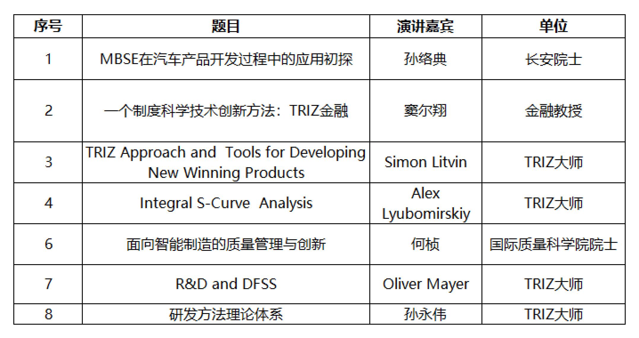 演讲嘉宾来自于不同的国家,不同的领域,不但有来自国内各个企业、高校对研发方法论感兴趣的专家,有来自美国、德国的TRIZ五级大师,有企业的先进研发方法论的推进人员,也有解决问题丰富经验的工程师。