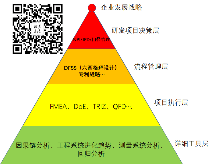 了解研发方法金字塔理论体系, 理解TRIZ理论与其他研发方法的关系,与其他理论形成优势互补